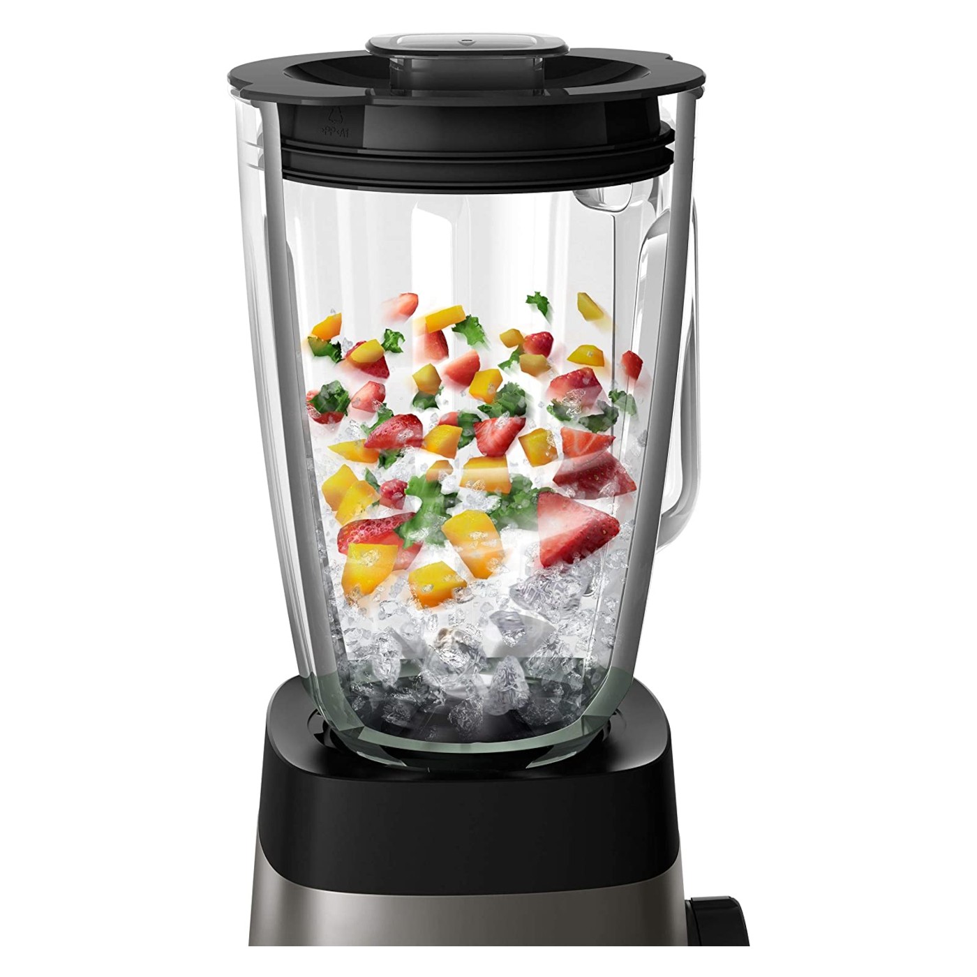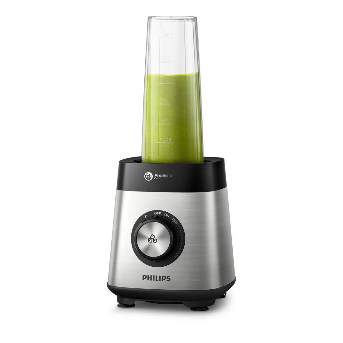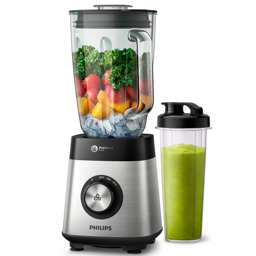 مخلوط کن فیلیپس HR3573 یکی دیگر از محصولات باکیفیت برند PHLIPS است. این دستگاه دارای موتور کم مصرف با قدرت 1000 وات برای متعادل کردن راندمان قدرت و نتایج ترکیبی عالی است. مخلوط کن با فناوری ProBlend Crush، سختترین مواد را دو برابر سریعتر به اسموتیهای لذتبخش تبدیل میکند. تیغه های 6 پره ستاره ای در ترکیب با موتور پرقدرت دستگاه، یخ و قطعات بزرگ را به بهترین شکل خرد می کند. جنس بدنه ی مخلوط کن از فلزی بوده که علاوه بر استحکام، ظاهر زیبا و شیکی به آن بخشیده است.