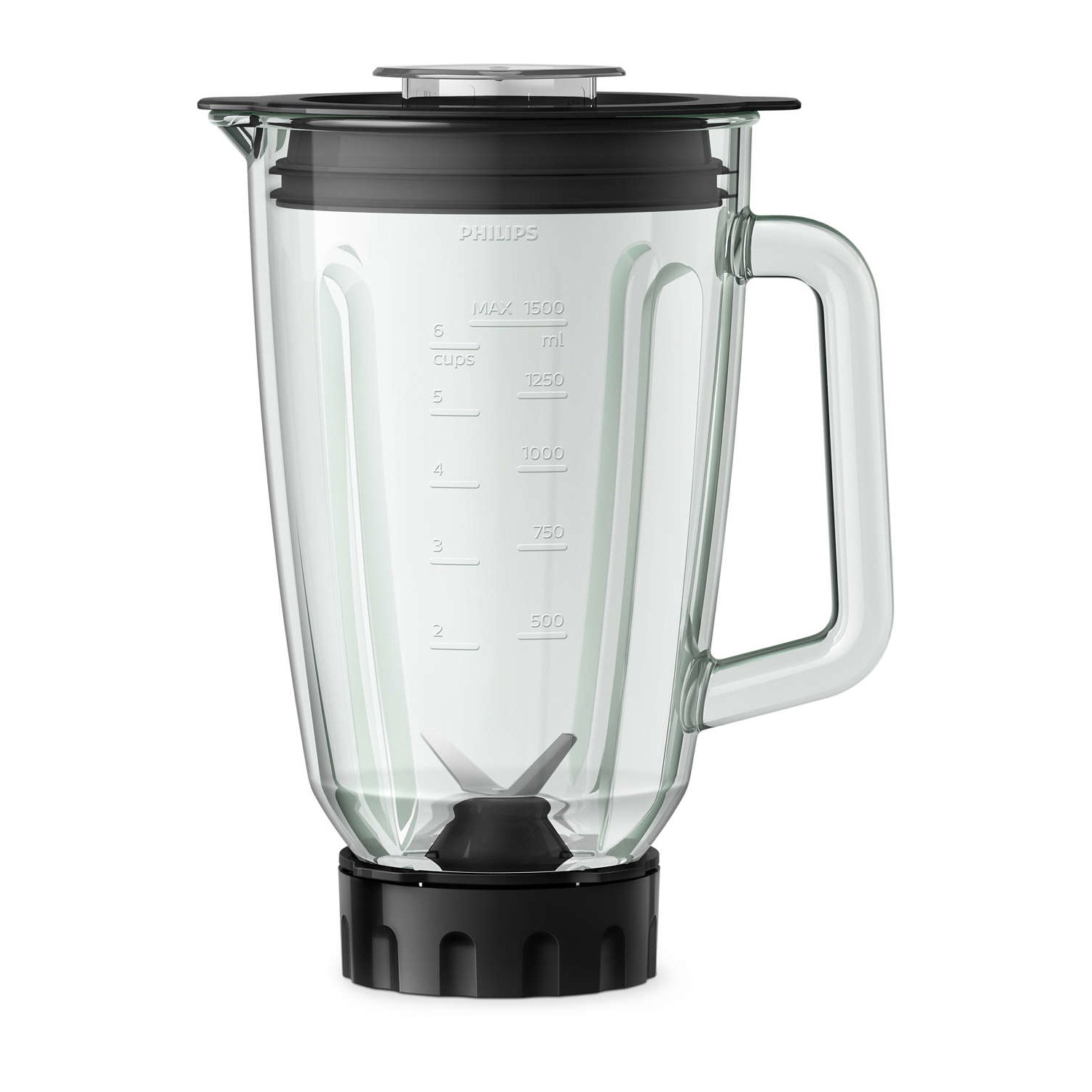 مخلوط کن مدل 3573 فیلیپس دارای پارچ شیشه ای بزرگ 2 لیتری با ظرفیت کاری 1.5 لیتر برای اسموتی های خوش طعم است که می توانید آن را با خانواده نوش جان کنید یا برای بعداً ذخیره کنید. طراحی آجدار و خلاقانه پارچ باعث جریان بهینه مواد و بهترین نتایج ترکیبی را تضمین میکند. به همراه دستگاه یک عدد بطری با گنجایش 0.6 لیتر وجود داشته که حتی در بیرون از خانه نیز میتوانید از اسموتی خود لذت ببرید.