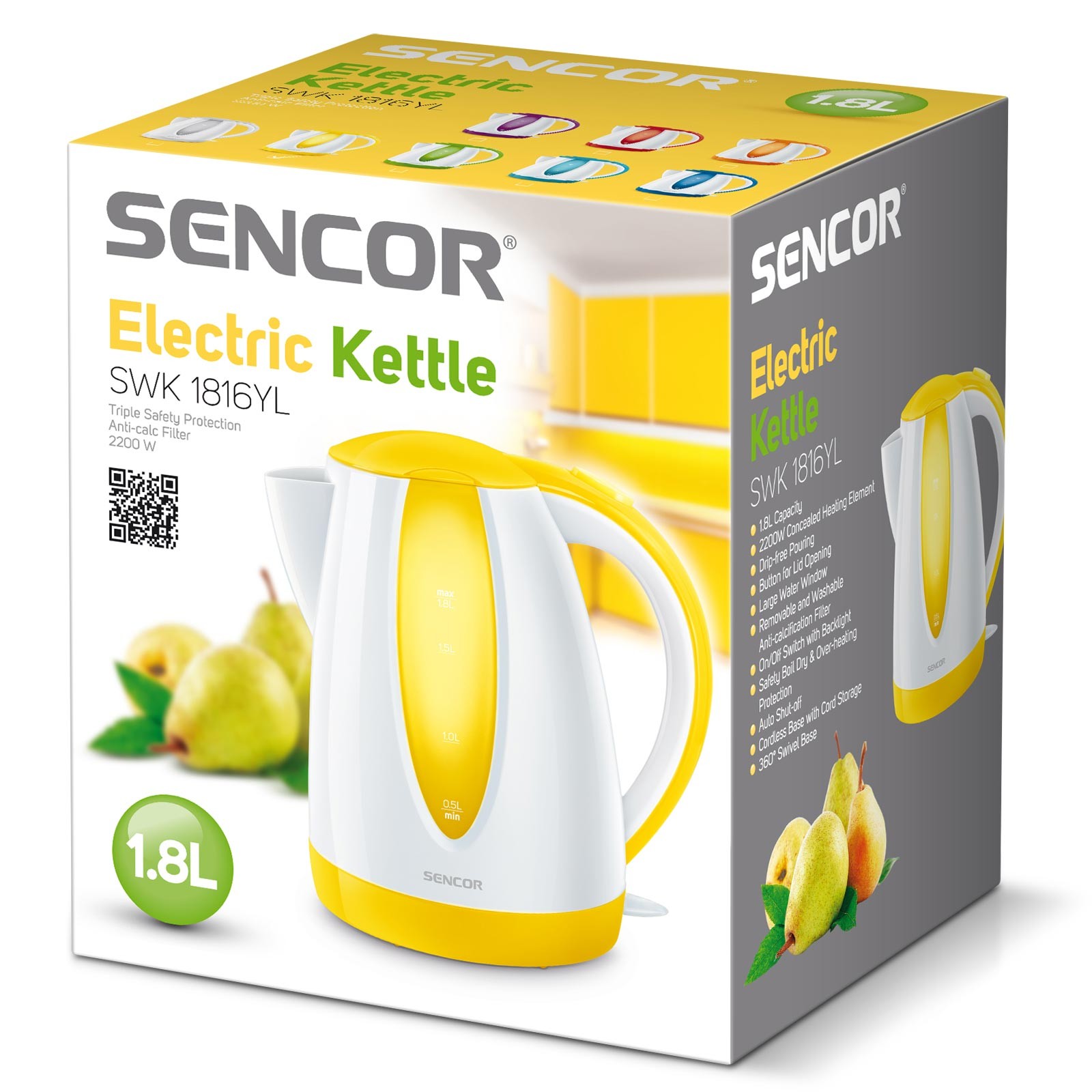 کتری برقی Sencor SWK 1816YL مجهز به یک پایه گرمایشی از جنس استیل ضد زنگ است که در داخل آن المنت حرارتی قرار گرفته است. کتری بدون سیم بوده و قابلیت چرخش 360 درجه دارد. علاوه بر این در زیر این پایه محلی برای جمع آوری سیم برق طراحی شده است. برای روشن/خاموش کردن دستگاه، از دکمه اهرمی موجود بر روی پایه استفاده خواهد شد.