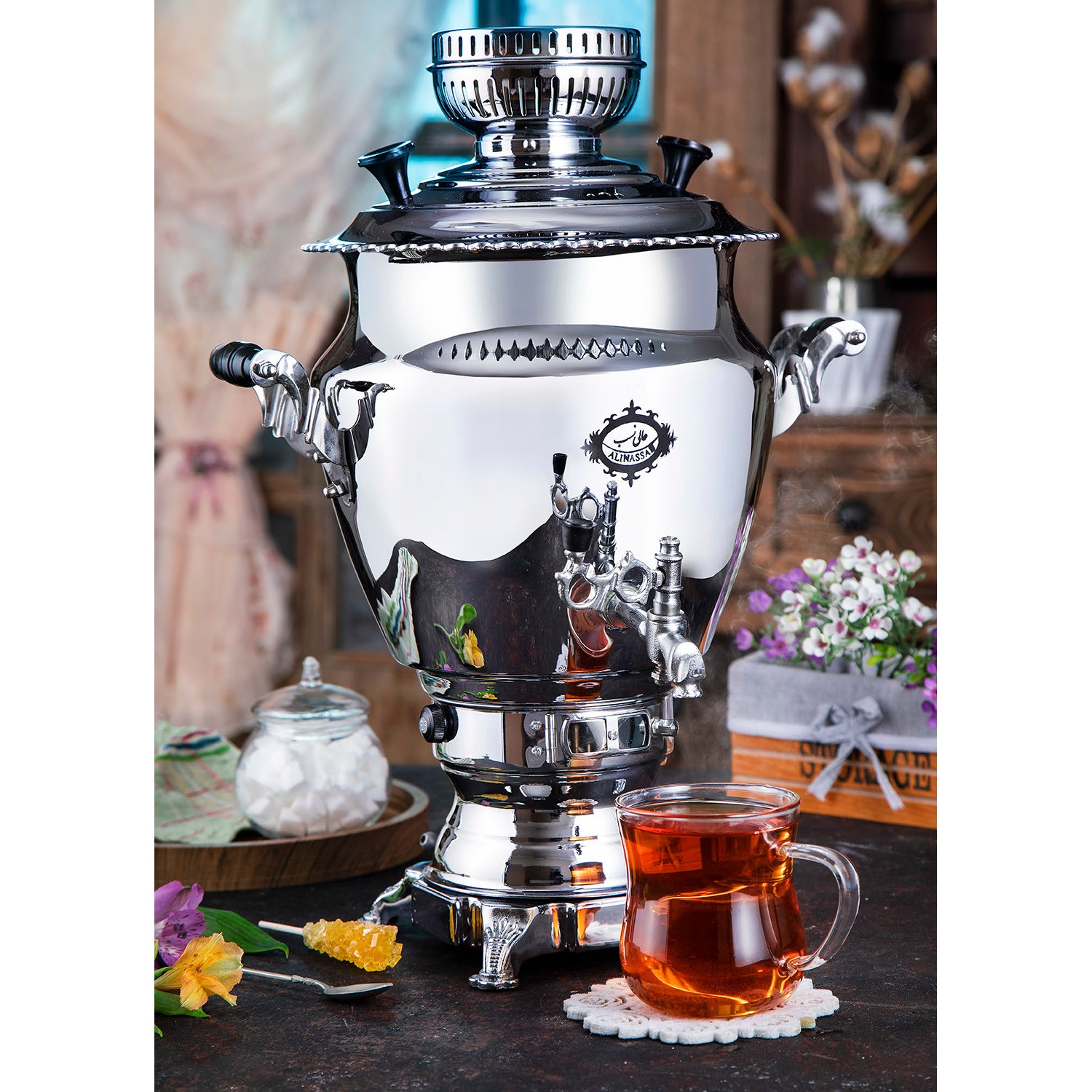 خانه / لوازم خانه و آشپزخانه / تهیه و نگه داری نوشیدنی / سماور گازی ( گازسوز ) / سماور گازی عالی نسب مدل گنجینه سیمین ظرفیت 6 لیتر