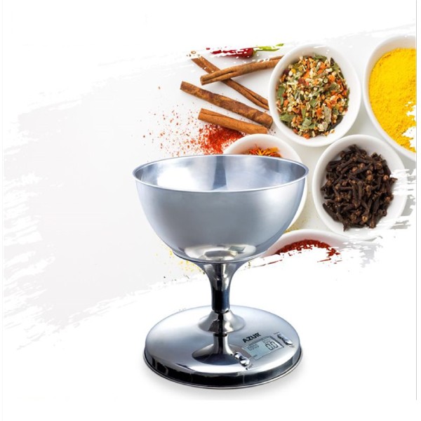 ترازو آشپزحانه آزور مدل 901KS یکی از محصولات با کیفیت و کاربردی برند آزور می باشد که برای هر آشپزخانه امروزی مورد نیاز است. طراحی ظاهری این محصول بسیار زیبا بوده و جنس بدنه آن از استیل با کیفیت است. کاسه ی همراه این محصول نیز از استیل ضد زنگ و قابل شستشو می باشد. در قسمت پایین محصول دکمه های خاموش روشن، دکمه عملکرد صفر و تبدیل واحدهای وزن قرار داده شده است و همچنین دارای عملکرد خاموش شدن اتوماتیک است که در صورت استفاده نکردن از آن بعد از مدتی خاموش شده و در مصرف باتری آن صرفه جویی خواهد شد.