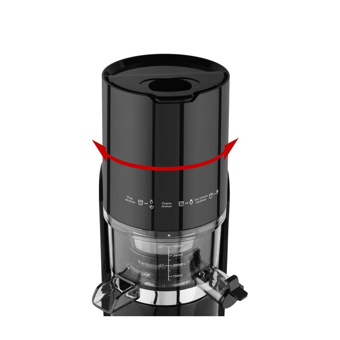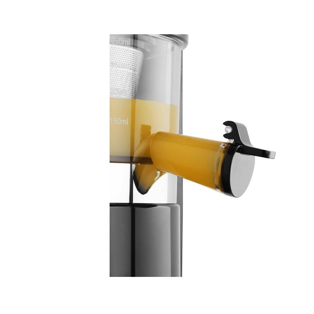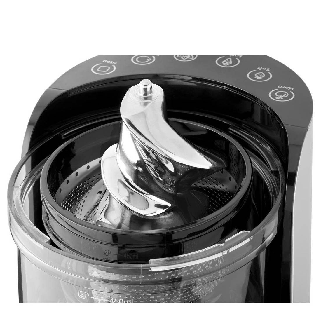 این عصاره گیر دارای پنل کاربری لمسی است و از 4 حالت از پیش تعیین شده برای خردکردن مواد غذایی سخت و نرم برخوردار است و همچنین مجهز به 3 صافی فلزی ریز، متوسط و درشت است که تهیه انواع اسموتی و بستنی را راحت تر می کند. از دیگر ویژگی های این عصاره گیر می توان به سیستم ضد چکه، برق ورودی 200 وات و ولتاژ 200-240 ولت اشاره کرد. همچنین دارای تجهیزات جانبی درب فیلتر، ظرف تفاله، هل دهنده و برس تمیز کننده است.