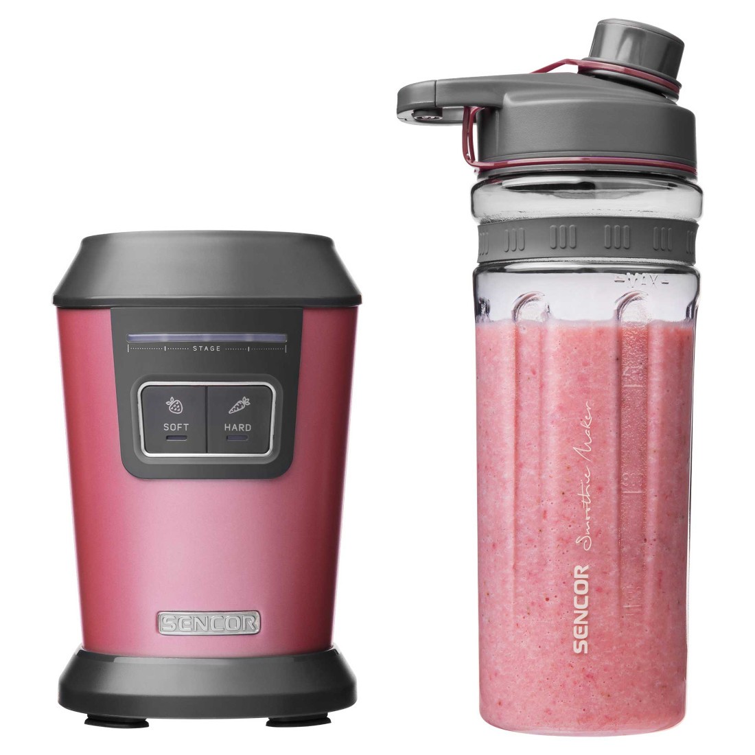 این اسموتی ساز یک بطری اسپرت 0.6 لیتری دارد که شما می توانید از آن برای زمان هایی که در باشگاه یا بیرون از منزل هستید استفاده کنید. با توجه اندازه ی مناسب و درب محکمی که دارد شما می توانید آن را به آسانی در کیف، ماشین و یا به شلوارتان بچسبانید. جنس بطری ها از پلاستیک تریتان بوده و شما می توانید هم نوشیدنی های سردتان و هم نوشیدنی های گرم تان را در داخل این بطری ها نگهداری کنید، بدون آنکه نگران انتشار و یا واکنش شیمیایی مواد با بطری شوید؛ زیرا بطری ها فاقد BPA هستند.