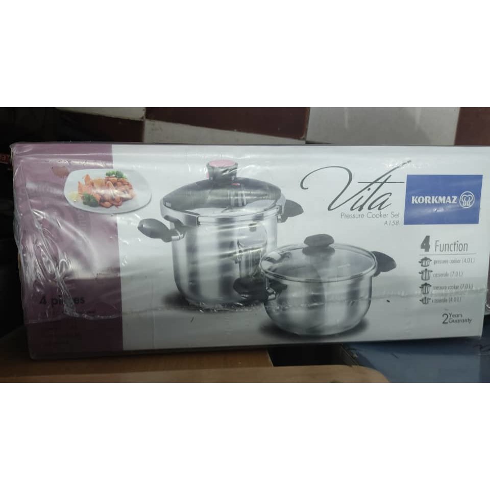 زودپز کرکماز مدل ویتا A 158 ساخت شرکت کرکماز ترکیه می‌باشد. این سرویس شامل یک زودپز 7 لیتری و یک قابلمه 4 لیتری با درب شیشه‌ای می‌باشد. سایز درب زودپز و قابلمه با هم یکسان بوده و شما بعد از پخت غذا در داخل زودپز با قرار دادن درب شیشه‌ای قابلمه بر روی آن می‌توانید به عنوان یک قابلمه  نیز از آن استفاده کنید. جنس بدنه سرویس زودپز کرکماز مدل Vita A158 از استیل ضدزنگ 18/10 می‌باشد که در این استیل 18 درصد کروم و 10 درصد نیکل به کار رفته است و وجود این آلیاژها باعث زیبایی و مقاومت بدنه در برابر خراش خواهد شد.