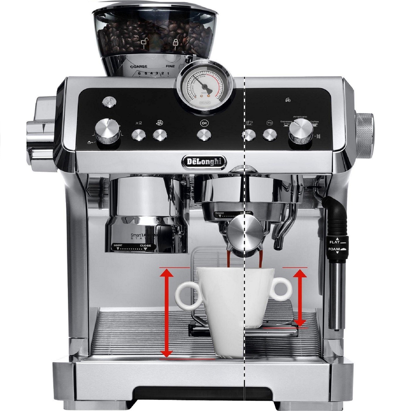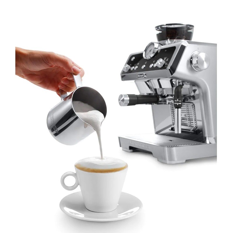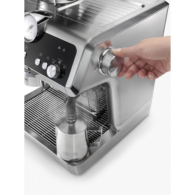 برای این دستگاه دو سیستم گرمایشی مجزا برای قهوه و شیر تعبیه شده است و شما می توانید نوشیدنی های بر پایه شیر را با استفاده از سیستم پیشرفته لاته آماده و نوش جان کنید. این اسپرسو ساز دلونگی دارای 3 حالت تنظیمات برای آماده کردن اسپرسو، آمریکانو و دیگر انواع قهوه مثل فرانسه است و شما مطابق با نوع دلخواهتان می توانید از ولوم سمت راست دستگاه استفاده کنید. با وجود دو نازل همزمان می توانید با سرعت بیشتر 2 فنجان اسپرسو آماده کنید فقط کافیست بر روی پنل تنظیمات دکمه X2 را فشار دهید.