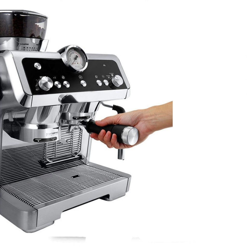 از ویژگی های متمایزکننده ای که طراحان برای اسپرسو ساز De'longhi در نظر گرفته اند، سیستم آسیاب (Grinding) قهوه است. در قسمت بالایی این دستگاه یک مخزن شفاف آسیاب قهوه به چشم می خورد که گنجایشی برابر با 400 گرم دانه قهوه را دارد و با فشردن دکمه تنظیمات آن که شامل 6 حالت می باشد شما می توانید انتخاب کنید که به چه میزان قهوه آسیاب شود از ریز تا درشت،و چی بهتر از نوشیدن یک فنجان قهوه تازه آسیاب شده.