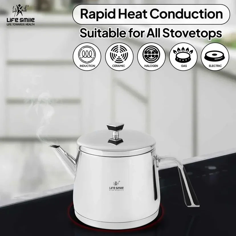 دسته کتری و دستگیره درب کتری LIFE SMILE TK1-5 از استیل و باکالیت ساخته شده اند که در اثر حرارت داغ نمی شوند و همیشه خنک باقی می مانند. همچنین دارای طراحی ارگونومیک هستند و استفاده از آن دست را خسته نمی کند. کفه این کتری دارای پایه القایی بوده و قابل استفاده بر روی انواع اجاق ها است و همچنین در کمترین زمان حرارت را به تمامی نقاط کتری رسانده و باعث می شود آب زود به جوش آید.