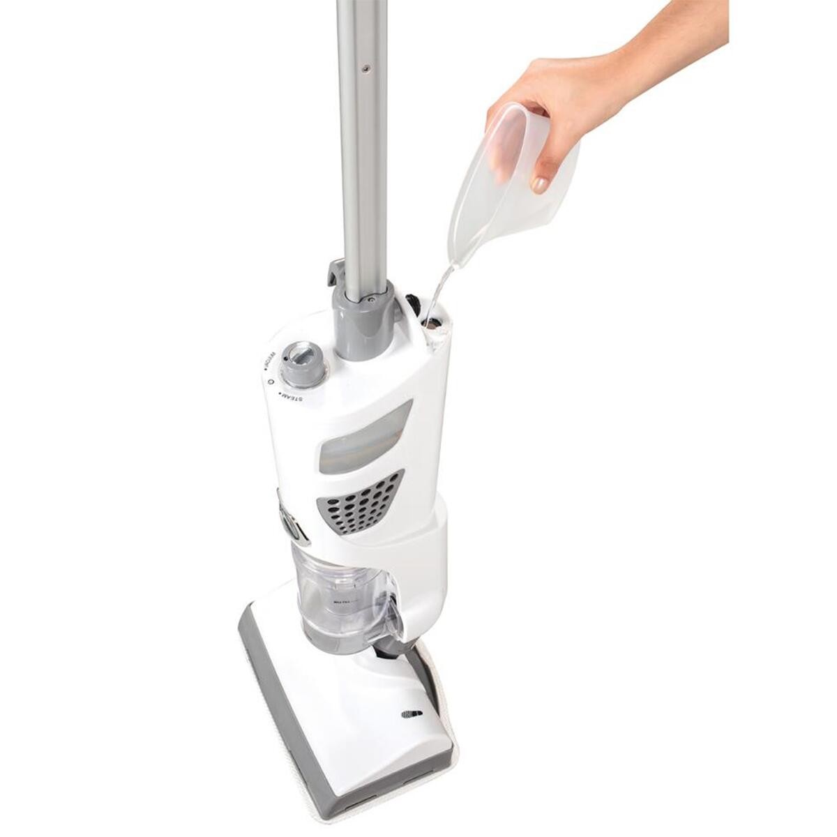 بخارشوی دو کاره فکر مدل روم مستر با توان 1550 وات به خوبی سطوح شیشهای، حمام، پارکت و کف سخت را تمیز و ضد عفونی میکند. زمانی که قصد استفاده از کارایی بخارشویی را دارید، ابتدا مخزن آب 550 میلیلیتری آن را پر کنید. سپس با روشن کردن دستگاه آب در مدت زمان یک دقیقه به بخار تبدیل میشود تا به خوبی میکروبها، باکتریها مضر و حتی کنههای خانگی را از بین برده و محیط را بهداشتی کند. دو عدد پارچه تمیز کننده میکروفیبر به همراه بخارشو وجود دارد. این محصول با دارا بودن پمپ اتوماتیک، به مدت 30 دقیقه مداوم قادر است کار تمیزکاری را انجام دهد.