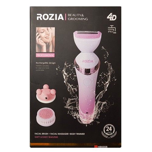 فیس براش روزیا مدل HB6008 دارای قابلیت استفاده به صورت خشک و مرطوب می باشد. تعداد سری های این ماشین ۳ عدد است ، سری ماساژ صورت ، سری خط زن و موزن و سری برش پاکسازی صورت . این ماشین ضد آب است و دارای طراحی شیک و ارگونومیک می باشد. به همراه این محصول فرچه ی تمیز کننده نیز عرضه می گردد.