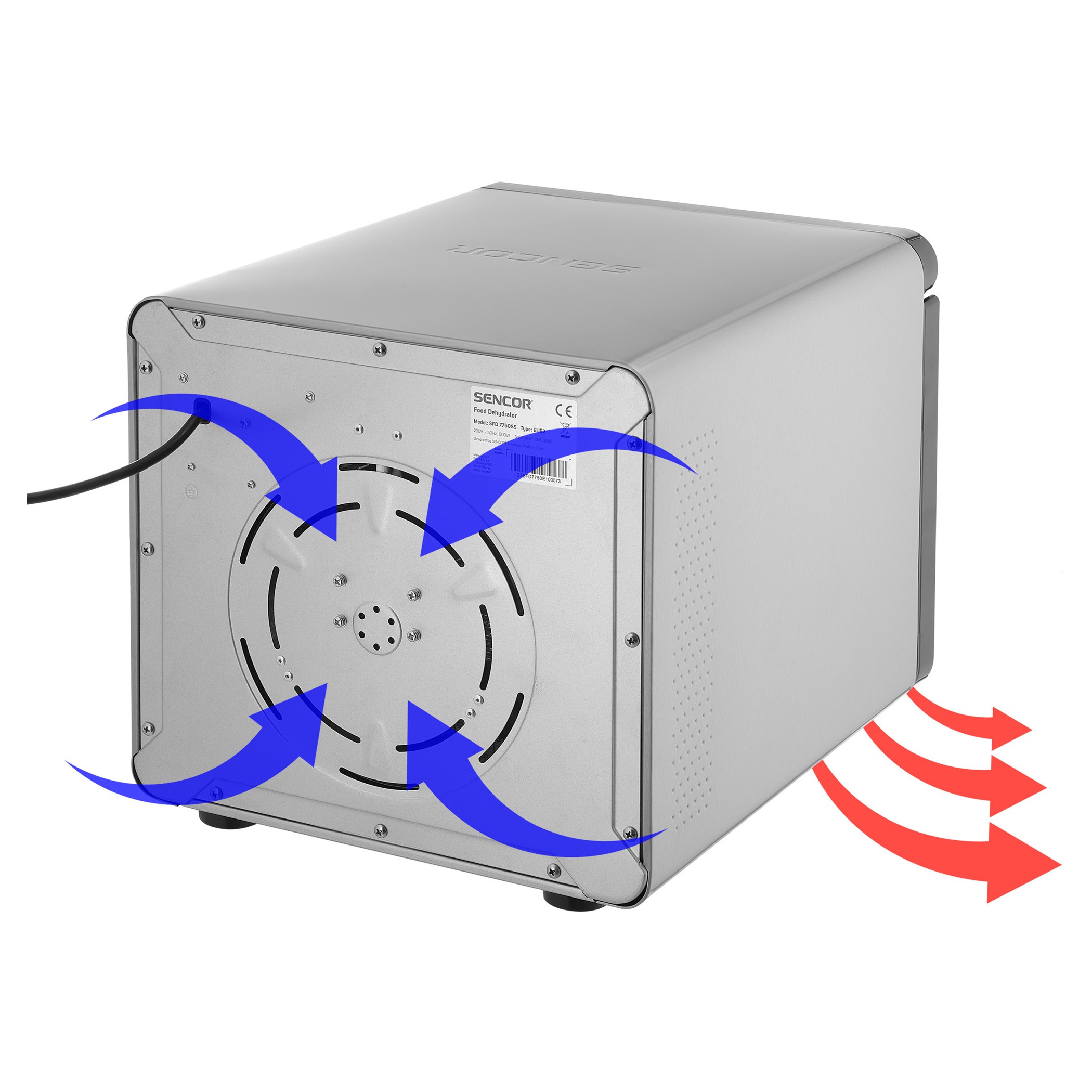 میوه خشککن 7750سنکور با دارا بودن تکنولوژی جریان هوای افقی و صفحات شبکه ای جریان هوای بهینه ای را در دستگاه فراهم کرده و با توزیع یکنواخت هوا نیازی به جابجایی صفحات حین فرایند خشک کردن وجود ندارد. خشک کن سنکور دارای پنل لمسی جهت اجرای تنظیمات و نمایشگر LED می باشد که ظاهر زیبایی را به کالا بخشیده است.