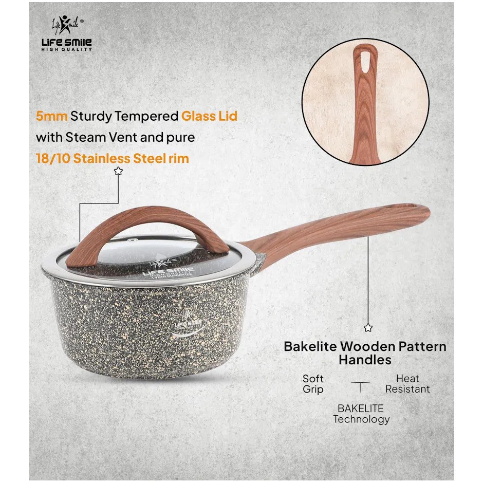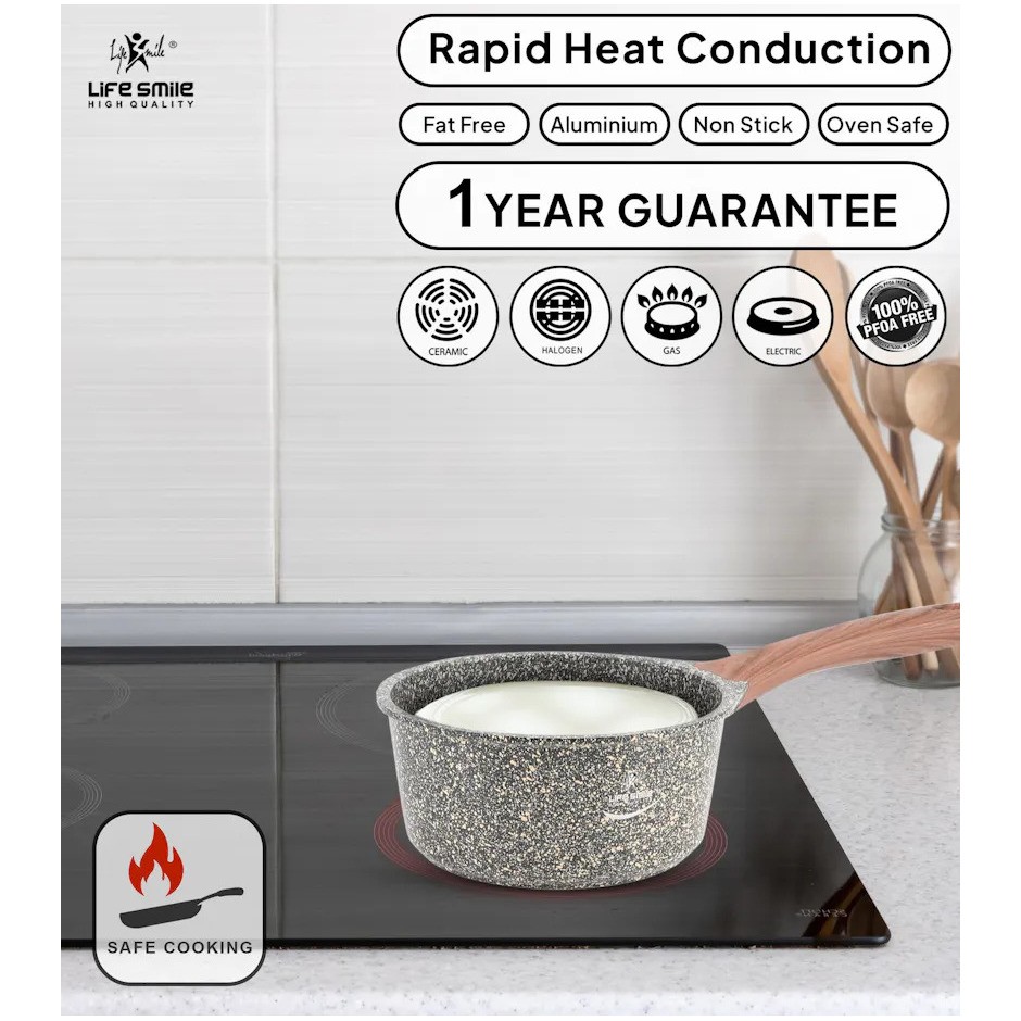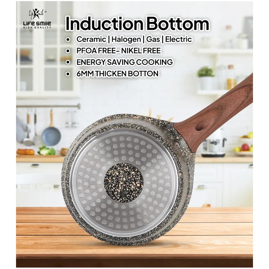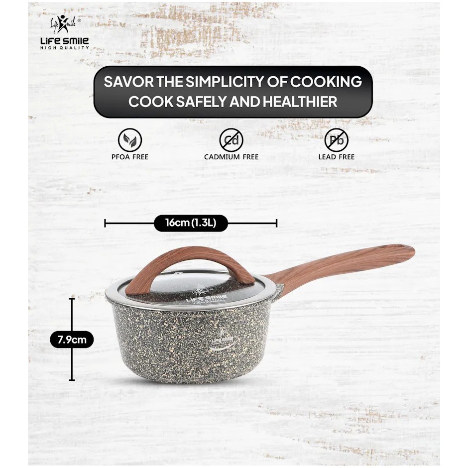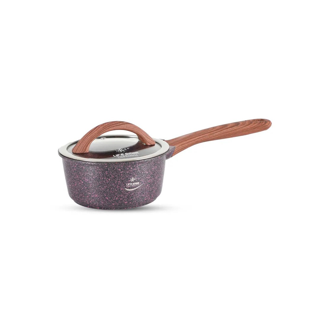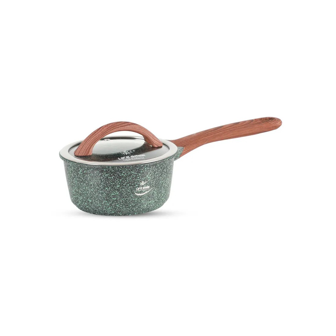 شیرجوش گرانیتی لایف اسمایل مدل Lifep5 Sau16 از محصولات زیبا و کاربردی این برند بوده که با کارایی های متفاوت و تنوع رنگ زیبا می تواند زینت بخش هر آشپزخانه ای در منزل و محیط کار باشد. این شیر داغ کن با سایز 16*7.9 سانتی متر و ظرفیت 1.3 لیتر در هر بار استفاده می تواند مقدار مناسبی از شیر، روغن و یا هر محصول دیگری را آماده کند. دسته بلند جدا شدنی ظرف و همچنین دسته درب شیرجوش از باکالیت نسوز بوده که با طرح چوبی آراسته شده است. درب شیشه ای 5 میلی متری شیرجوش گرانیتی لایف اسمایل دارای منفذ خروج بخار بوده که علاوه بر مشاهده پروسه پخت، از سر رفتن آن جلوگیری می شود. همچنین لبه ی درب که از استیل ضدزنگ می باشد به طرف داخل طراحی شده و قطرات بخار به داحل ظرف ریخته می شود.