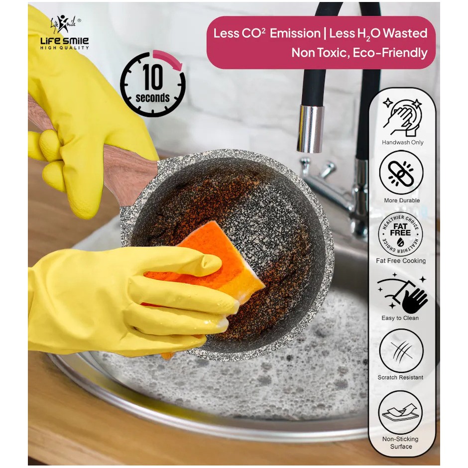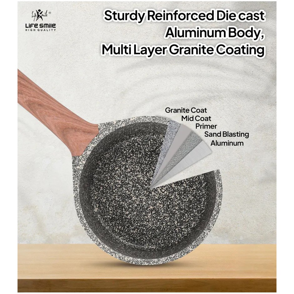 شیرجوش لایف اسمایل Lifep5 سایز 16 از آلمینیوم ریخته گری ساخته شده که دارای پوشش گرانیتی نچسب و با دوام می باشد. آلمینیوم انتقال دهنده سریع گرما بوده و به لطف کفه چند لایه شیرجوش گرما به صورت یکنواخت توزیع می شود که علاوه بر صرفه جویی در هزینه، زمان و انرژی، پخت یکدستی را فراهم می کند. پوشش گرانیتی شیرجوش بادوام بوده و بر روی انواع اجاق های موجود از جمله الکتریکی، هالوژنی، سرامیکی و گازی قابل استفاده بوده و در حین داغ شدن گاز مضر PFOA و کادیوم را آزاد نخواهد کرد و می توان از سلامت ماده غذایی اطمینان حاصل نمود.